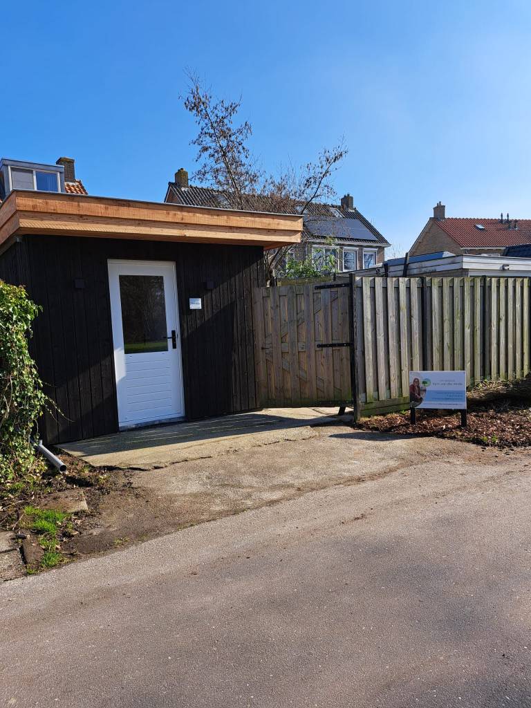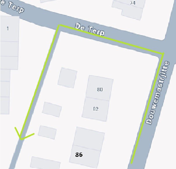 Je kunt de auto parkeren voor ons huis. De praktijk is te bereiken via de achterzijde van onze tuin. Op de kaart hieronder zie je de looproute duidelijk aangegeven.